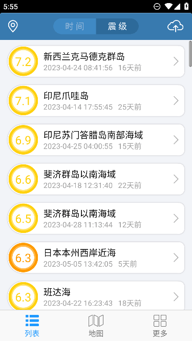 1、在“地震速报”APP的界面中,点击下方的“更多”图标按钮。