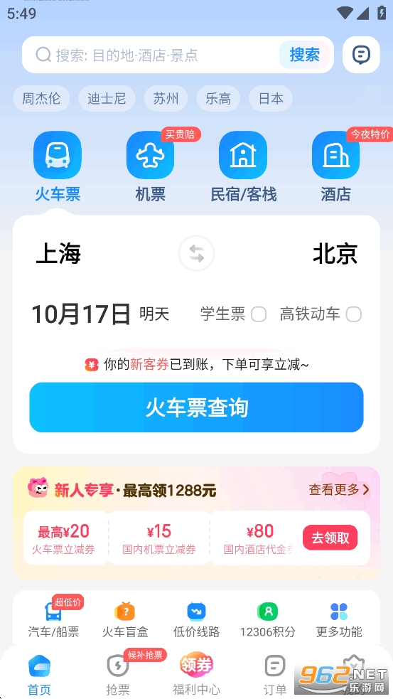 [抢票福利] - 靠窗、下铺免费抢,学生还有全年免费抢票福利,抢不到免费升坐席。