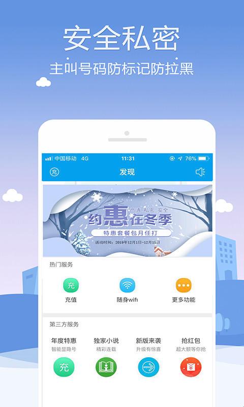 【号码隐私】支持本机去电显示,可一键隐藏手机号,突破手机黑名单;依靠电信级的底层架构加密对本机通话号码进行端到端的隐藏保护。
