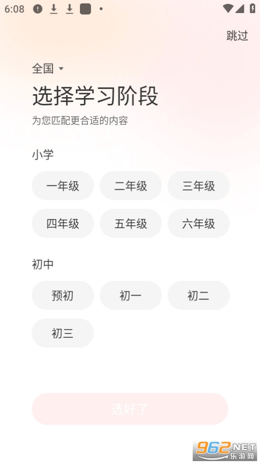 4.选择学习阶段就可以更改年级了,还可以对地区进行更改哦
