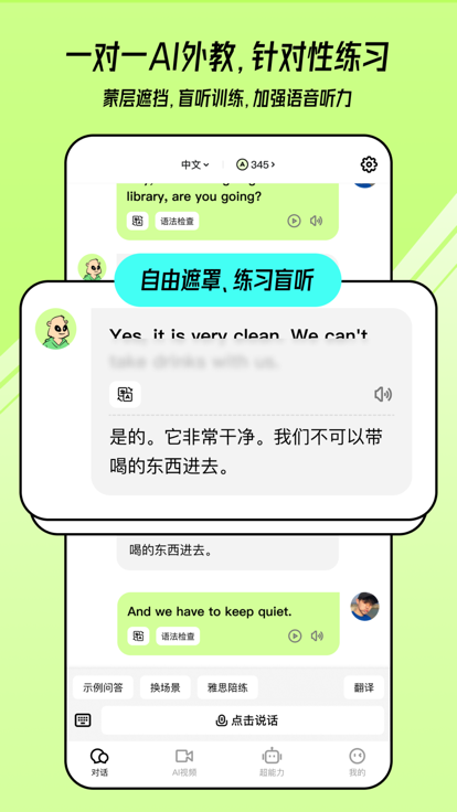 1、在线听力练习和口语测评,轻松应对多样化的语言考试和求职需求。