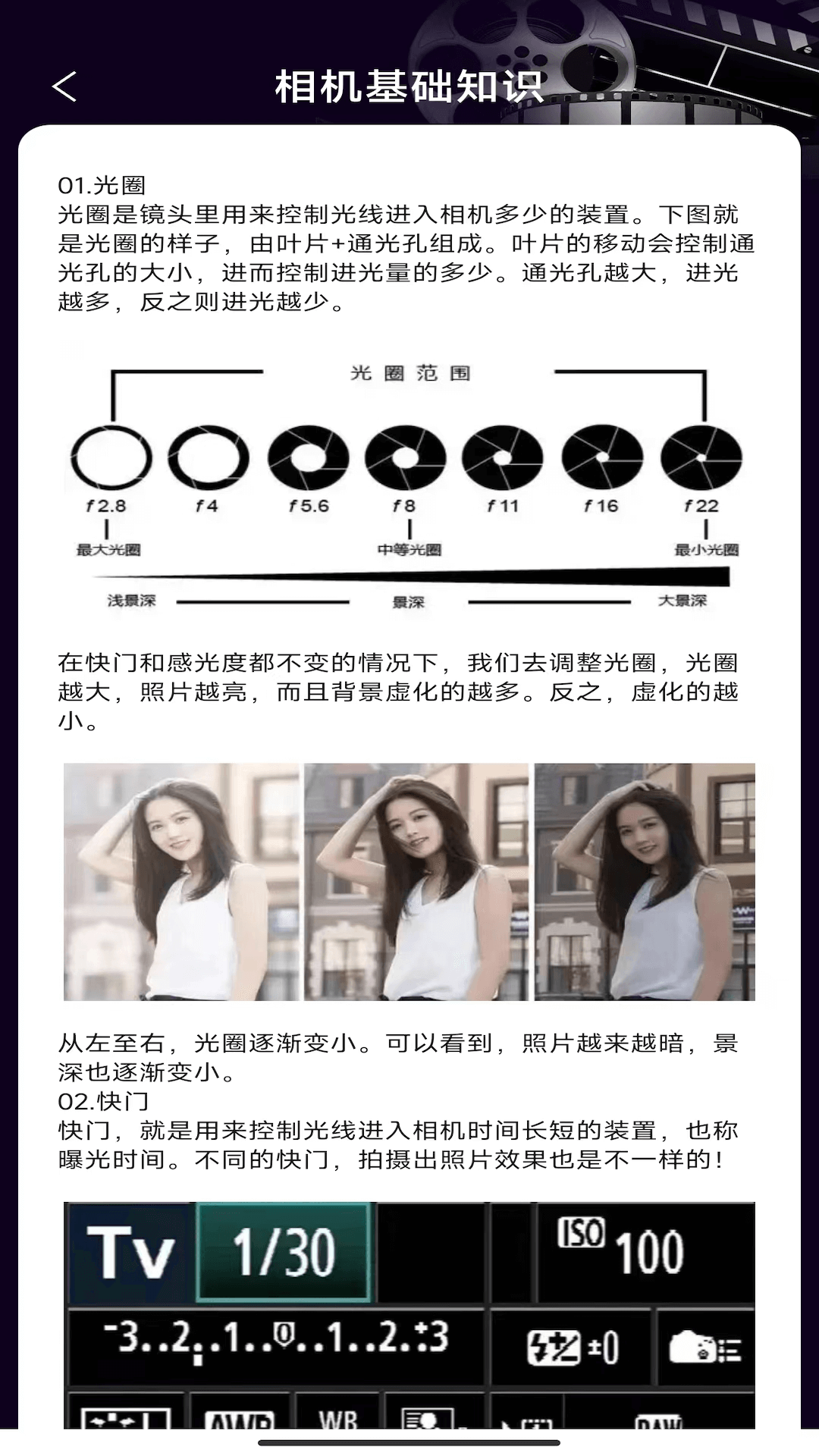 2、包含拍摄基础知识,让你更懂相机的拍摄和使用技巧。