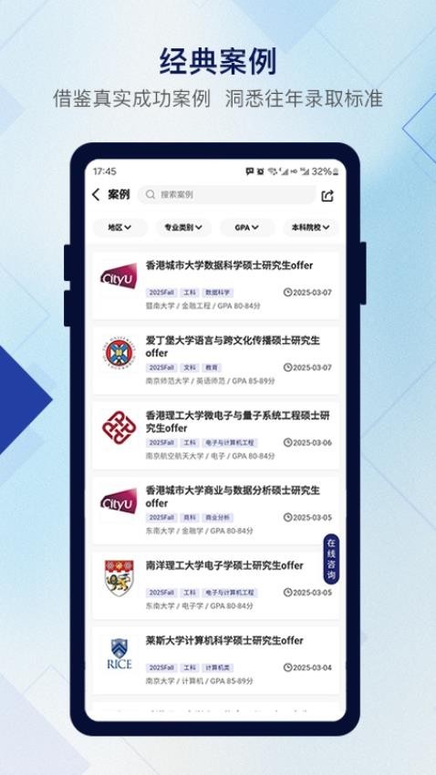 在这里你可以获取海量的案例信息,让你可以掌握更多的留学案例;