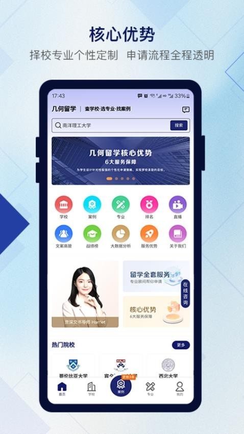 几何留学是一款专门面向有留学需求的用户打造设计的留学咨询服务平台,平台中拥有大量的专业人员可以帮助用户解答各种留学问题,有需要的用户还能帮你量身定制最合适的留学方案,给你最好的留学建议,为你提供全球各大名校的资源信息,帮你找到最合适最优质的院校。有需要的用户赶紧来下载使用吧!