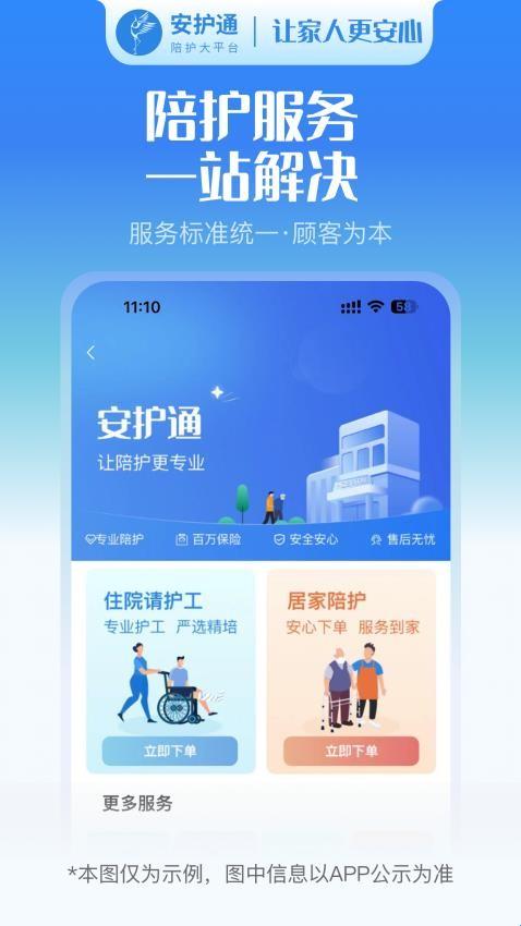 1、下载并打开安护通用户端app,就能查看诸多精选的陪护服务;
