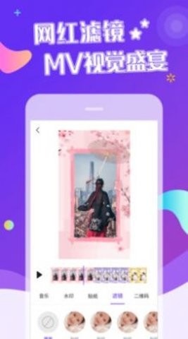 给视频添加水印防止被盗图,增加微商水印推荐微商人群使用哦,创建自家的微商相册。视频字幕能准确控制字幕时间,字幕特 效多种多样。背景音乐支持一键获取本地音乐进行背景音乐替换,也可以自己音乐剪辑哦!
