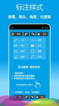 手机图片标注画笔是一款手机任意屏幕上可标注的app。可以帮助用户在图片上快速进行标记,支持自定义调节文字颜色、大小以及位置,该软件所使用的范围也是非常广的,各种工程图纸标注、日常学习等实用性非常强,有需要的小伙伴们快来下载体验吧!