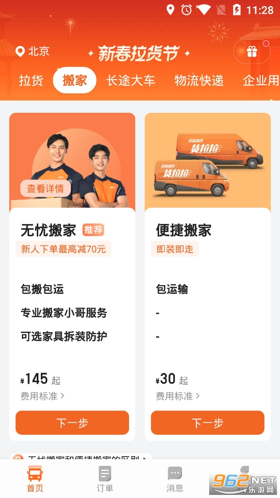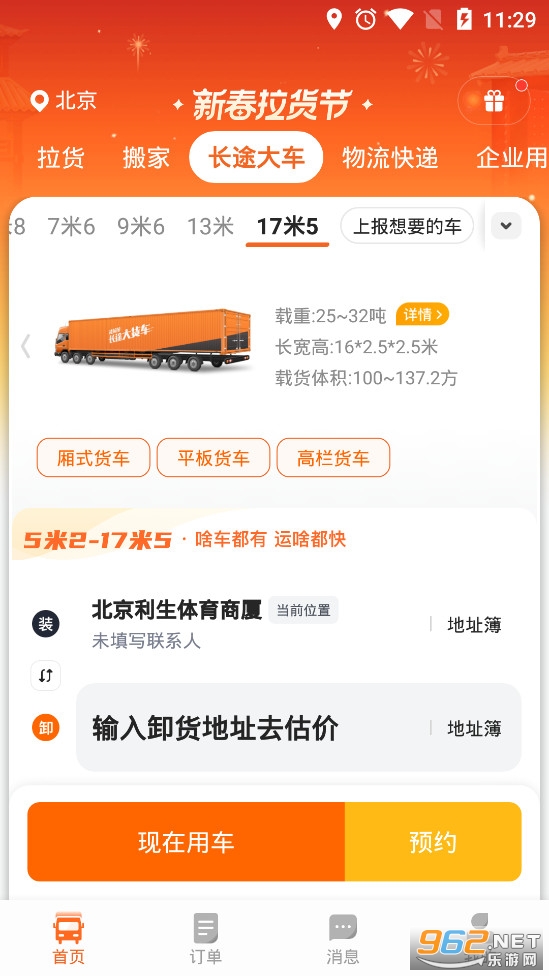拉货搬家发整车一键秒杀!全国各地,随时随地!同城拉货、跨城直达、上门搬家、建材运送、食品配送、电器家私运输、大件运送、宠物出游、展览物资运送、批发、企业用车......只需一键叫车,最快10分钟上门,轻松解决你所有的用车需求。