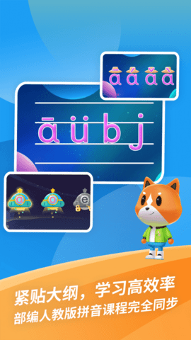 2.紧贴教育大纲,与2人教版拼音课程完全同步,旨在解决儿童音形难记.音准难发.拼读难拼等问题,帮助学龄前和小学低年级儿童轻松掌握拼音拼读,助力幼小衔接。