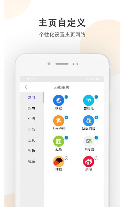 4、网站设置,支持对主业网站进行个性化的定制,添加经常用的网页。