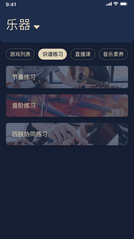 2、拥有游戏练习、自主练习、在线陪练、乐理知识、视唱练耳及音乐素养六大板块的辅助教学