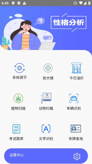 2、提供性格分析功能,通过问卷方式对用户的性格特征进行分析,了解自己;