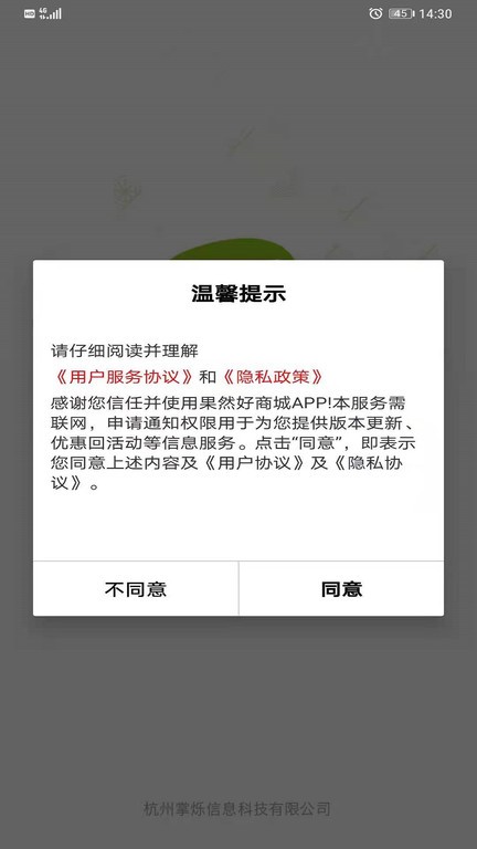1、阅读商城服务协议后,点击同意并进入按钮开始使用。