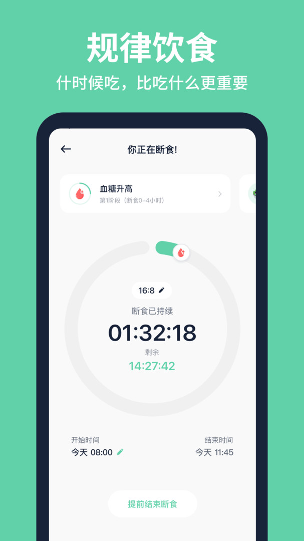 1.断食追踪:何时开始、何时结束,让您每一次的禁食数据都做到一目了然;