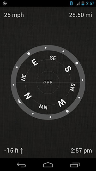 可以实时显示您的行程统计信息:当前速度,平均和*大速度,距离,移动(行程)时间,高程,基数方向以及GPS精度信息。