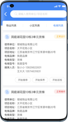 4、在线即可查看管理电梯的状态,比如正常运行、维修中等,并进行开始保养、开始巡检等操作;