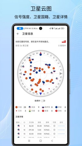 3、在GPS信号检测方面,该应用采用最新的算法和技术,能够实时检测GPS信号信息,并获取卫星的详细信息。