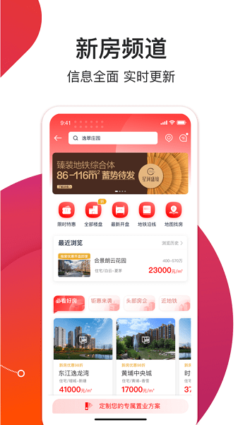 2、创新地图寻房模式,融合GPS定位技术,支持环线区域与地铁沿线筛选,可视化展示周边在售房源。