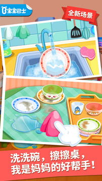 1、平台模拟真实家庭环境设计四大清洁区域,每个场景包含十余种互动任务,通过物品归类游戏培养逻辑思维。