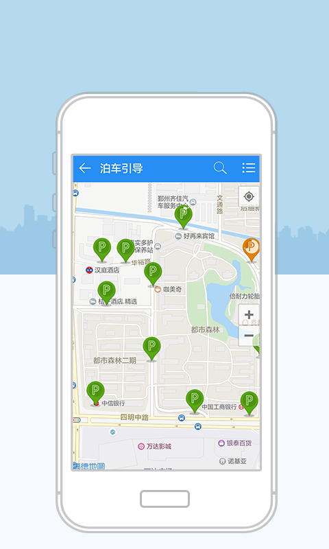 2、泊位搜索,地图智能语音导航方便您的出行。