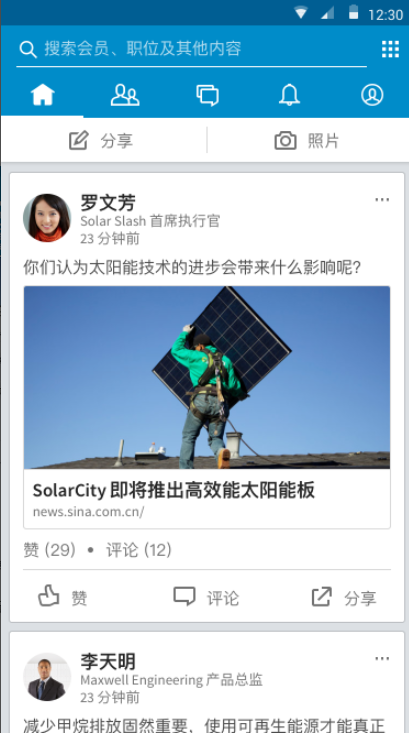 4、关注 linkedIn 人物,掌握业界精英分享的资讯。