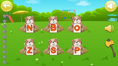1、找字母:设计了打地鼠的游戏,根据语音提示,找出正确的字母;