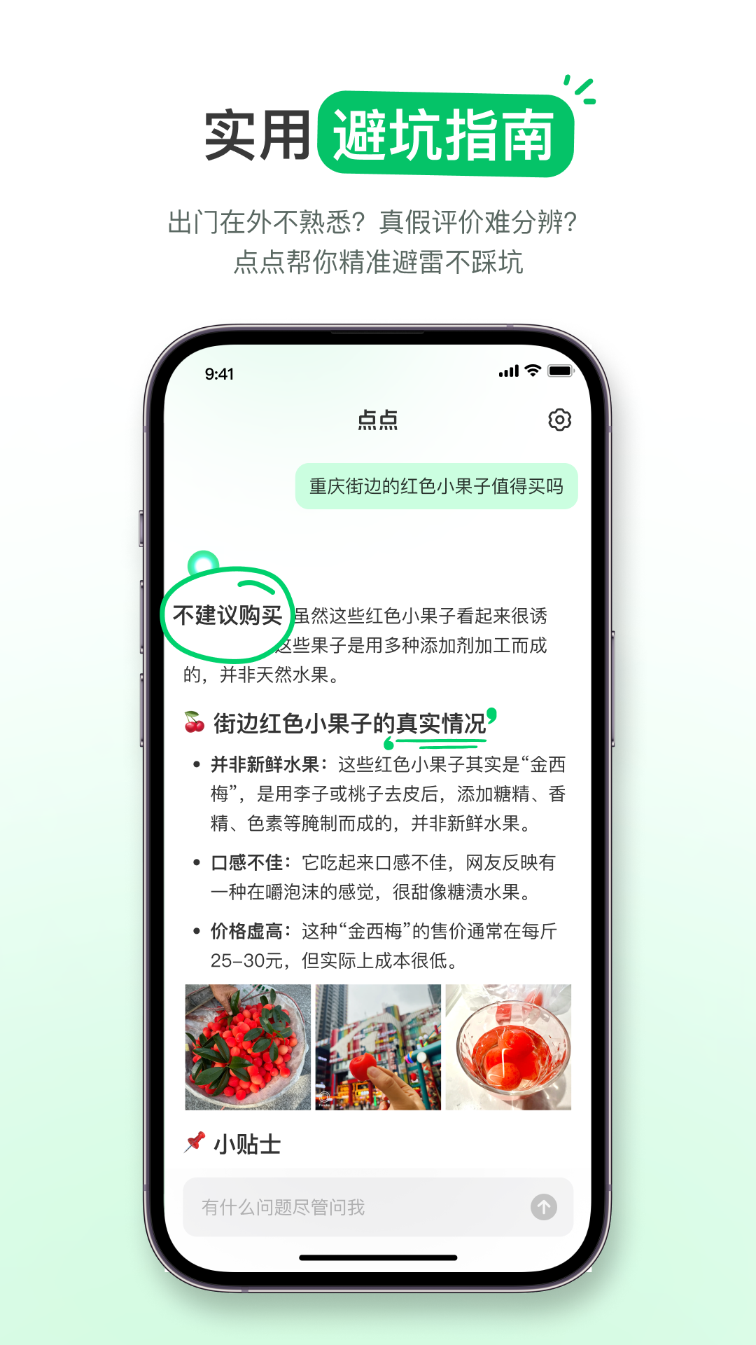 想要尝试新事物或美食,但又担心踩雷?点点APP提供各种信息,让你做出明智选择。