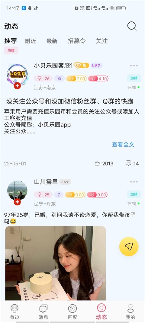 小贝乐园app是一款非常受年轻人喜欢的在线手机交友软件,小平台上为大家准备了非常丰富的聊天话题以及各种趣味的互动游戏,让你可以轻松找到你感兴趣的人,并且系统会根据你的喜好智能为你匹配你可能会感兴趣的人,给你带来更多脱单的机会。喜欢的用户不要错过哟!