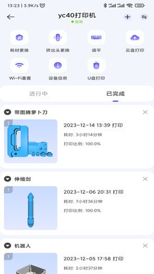 2、用户可以直接从App中选择模型,绑定3D打印机,通过App轻松控制打印过程,将虚拟的模型转化为现实中的物品。