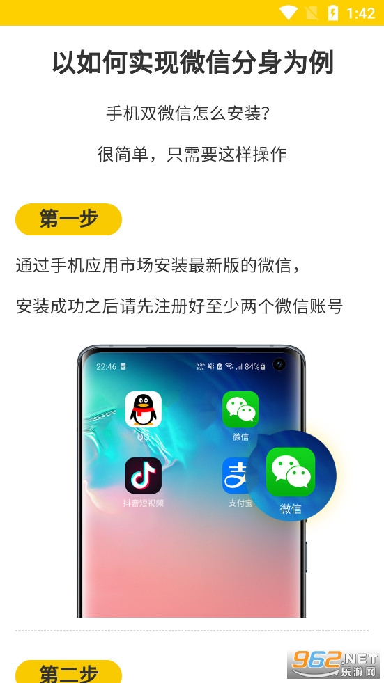 支持、QQ、淘宝、抖音、王者等应用游戏分身、双开/多开,小号分身源自官方,独立运行,体验与原版应用一模一样。