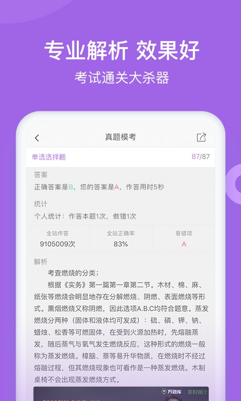 万题库模考大赛,100%依据官方标准出题、仿真机考系统,高效查漏补缺,让您离通关更近一步