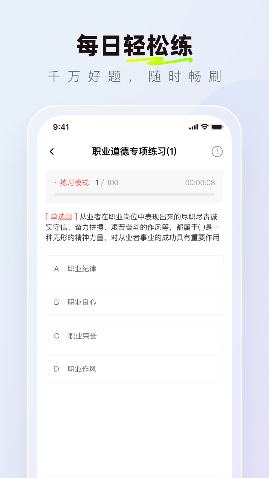精准练习每种题型帮助用户考试提分,提升自己的答题正确率。