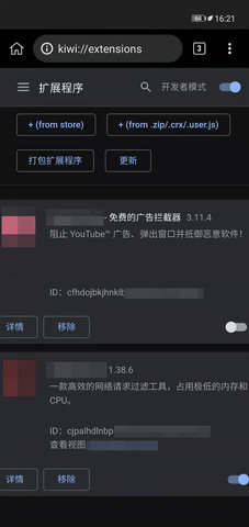 3、增加了Android上其他浏览器都没有的功能-支持桌面Chrome扩展程序