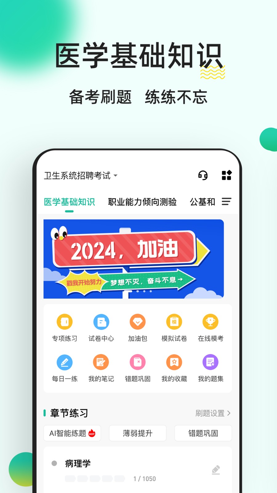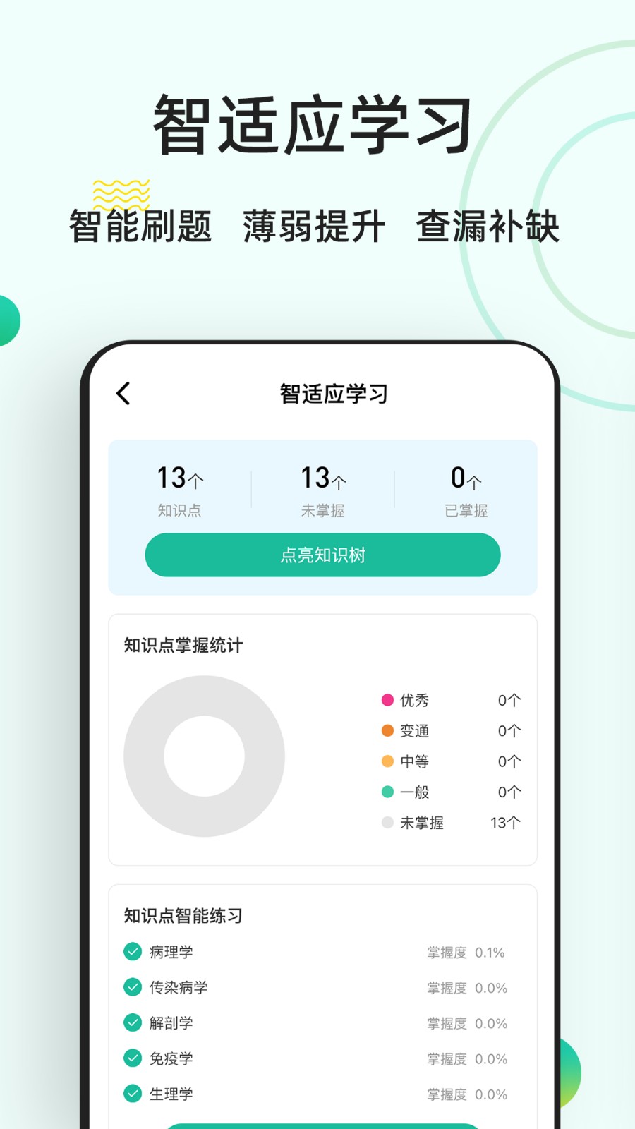 医学基础知识练题狗APP根据每一位考生的在线做题、模拟训练等,提供精准的能力评估报告和精准的考点掌握情况,针对性的进行专项练习。