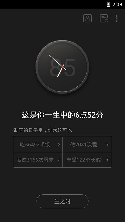 2、在死之钟功能中设置预计的生命终点,软件会生成倒计时,提醒珍惜当下每一天。