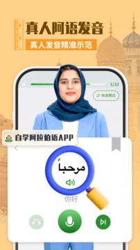 软件中的每一个元音、辅音都由专业母语者真人发声。跟读标准字母发音,纠正发音错误,助力更好的掌握阿语的语调、语速和节奏感。