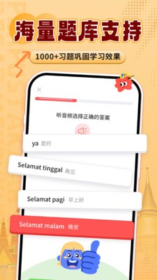 采用游戏化学习法,让你在轻松闯关中累积词汇、掌握常用短语。万丈高楼平地起,印尼语从学习词汇和常用短语开始,你也可以像母语者般流利说印尼语。