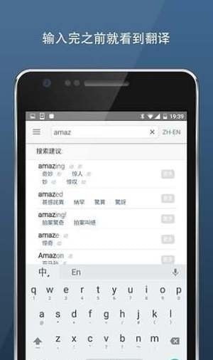 2、是全球范围内用词最丰富的手机词典应用,涵盖超过十亿条翻译文本,翻译结果准确可靠。