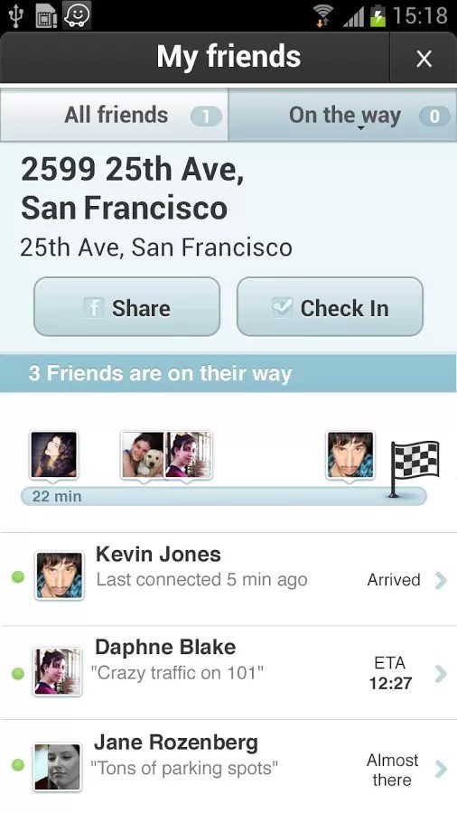 6、向您正要前往会合的朋友们发送您的预计到达时间以及即时驾驶状态;