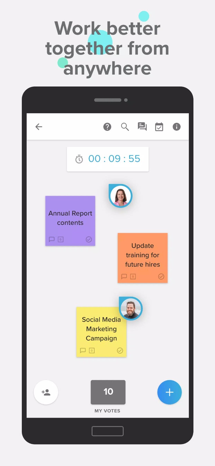 3.最底下的数字显示的是你的票数,你可以对团队成员发表的便签进行投票。