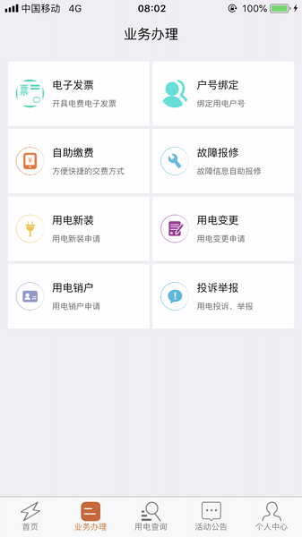 电费账单、用电新装、用电变更、用电销户