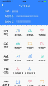 2.后台程序通过身份证号码将查询到的所有相关个人参保信息,整合到个人档案袋栏目中,再也不用通过栏目一个个去查找个人信息