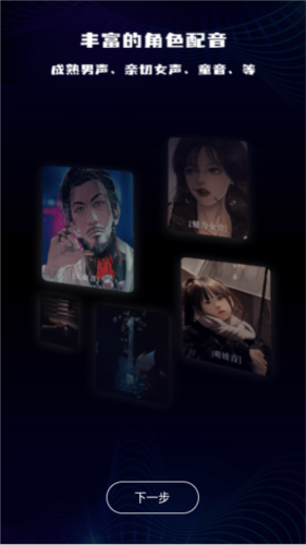 2、丰富的角色配音,成熟男声、亲切女声、童音、等。