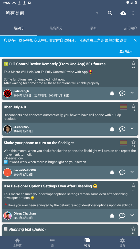 MacroDroid Pro 包含许多内置和用户共享模板,以演示应用程序的强大功能和灵活性,并帮助您开始使用。这些模板可以按原样使用,也可以轻松定制,以满足您的需求。