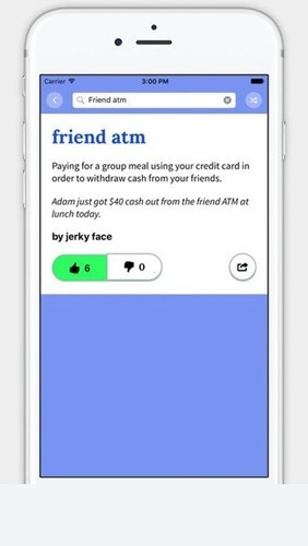 《Urban Dictionary俚语翻译正版app》是一款超级专业超级实用的俚语词典类软件。当下最流行的俚语翻译类软件,你们需要的时候,打开之后马上就可以直接使用了,而且是完全免费的!具有每个人编写的定义的在线词典。这里汇集了丰富的俚语资源,用户可以轻松的查找俚语的详细释义和例句,还可以通过社交网站进行分享。非常的有趣和便捷。所以你们也需要的话,现在就赶紧来下载软件吧!