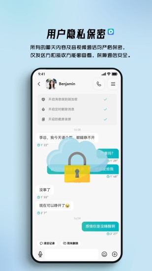 2、语音和视频通话:支持高质量的语音和视频通话,确保通话过程流畅清晰,具备强大的隐私保护。