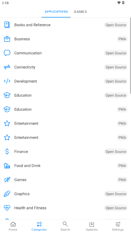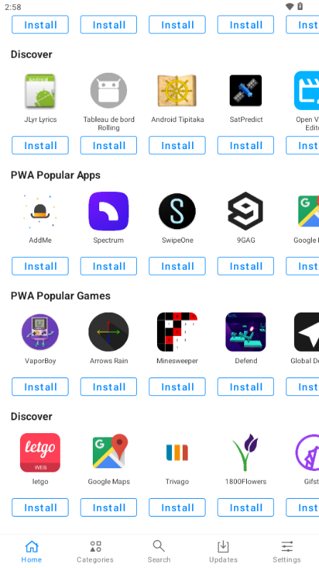 Google Play 商店替代品: 提供下载、更新、查找应用等功能,与Google Play 商店功能类似,并拥有优雅的设计。