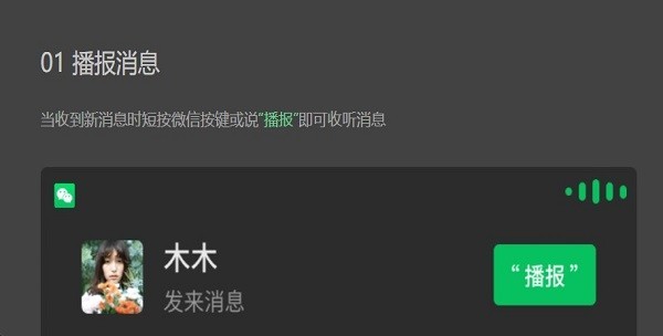 3、播报消息当收到新消息时短按按键或说播报即可收听消息