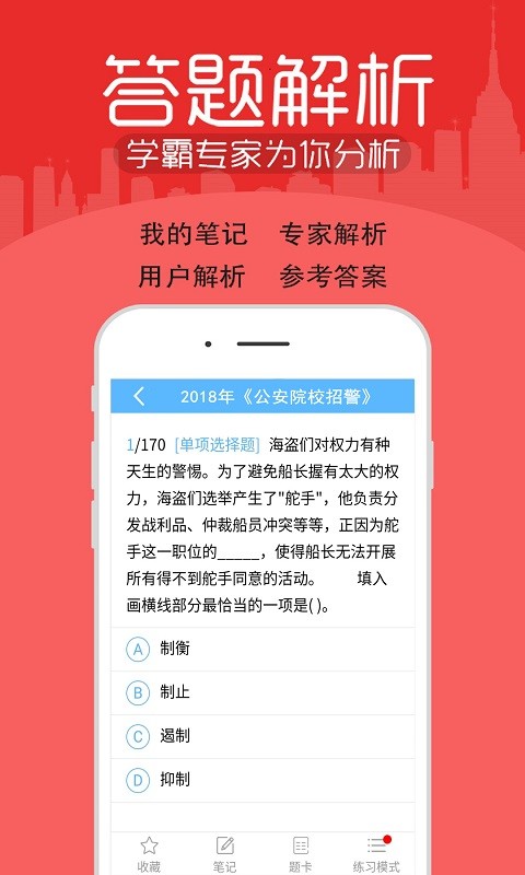 招警考试宝典可以为正在苦恼学习的用户们提供最便捷最有效的学习方法,海量优质学习资料在这里都可以找到,涵盖领域范围十分广泛,可以满足不同用户的学习需求,而且章节内容分类明确,还可以根据不同用户的学习进度来为你推送不同学习阶段和难度的内容,从最简单的题目到后面的高阶难度,一步步逐渐为你打好基础,提升你的知识储备量,还可以通过真实考试模拟功能来及时检测用户的考试水平,让你知道自己的真实成绩。