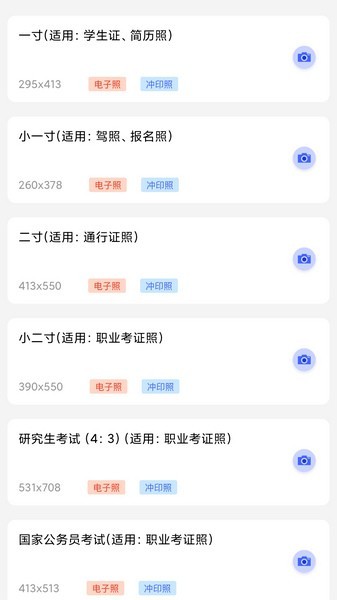支持各种电子证件照尺寸,制作出标准证件照